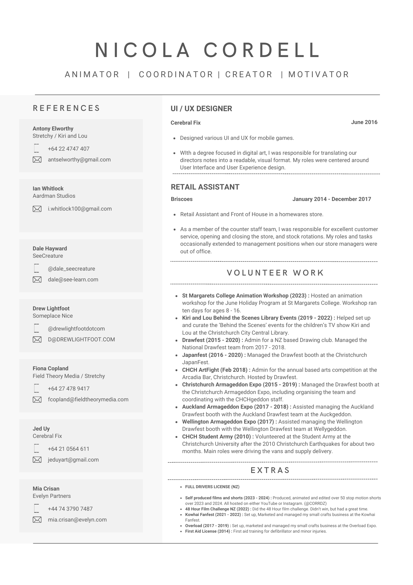I am a stop motion animator and production coordinator. I studied at both CPIT and ARA Institute of Canterbury in New Zealand.